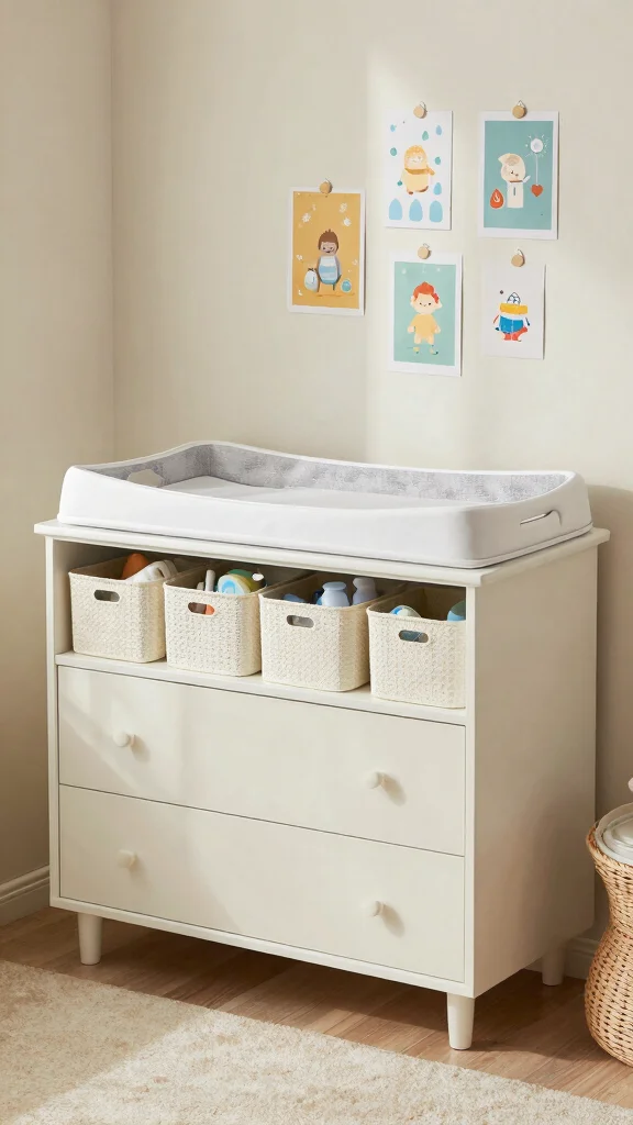 Consider using decorative bins that blend with your decor theme for a more cohesive look. Investing in a changing pad with a removable cover makes cleaning a breeze, while adding artwork or a mobile above can engage your baby during changes. This practical approach also aligns with broader trends of multifunctional spaces that cater to modern parenting needs.