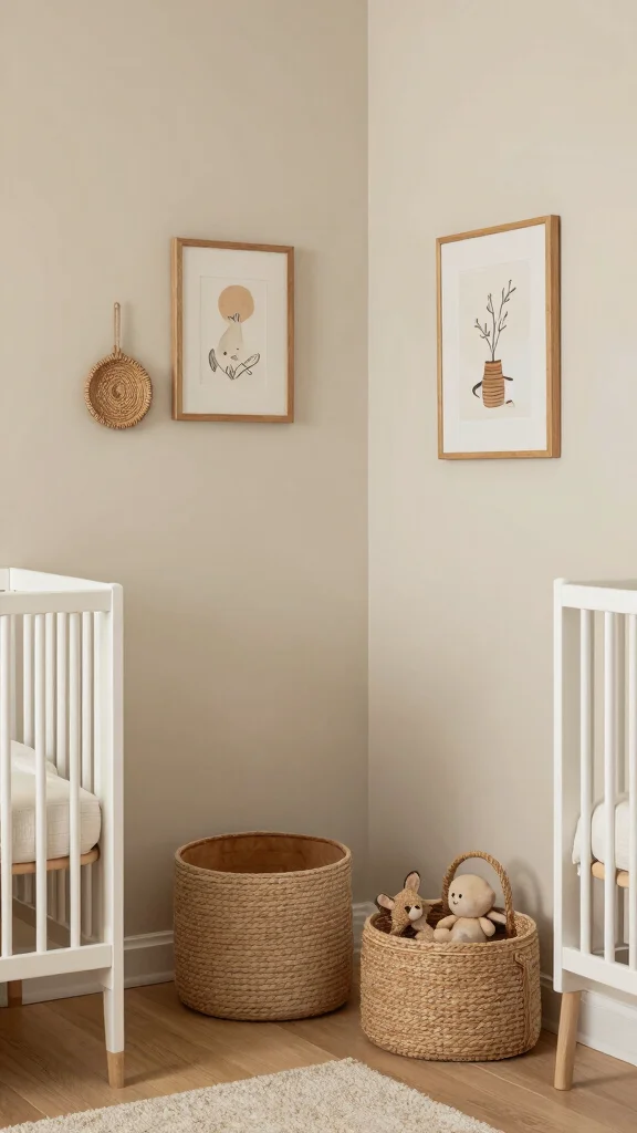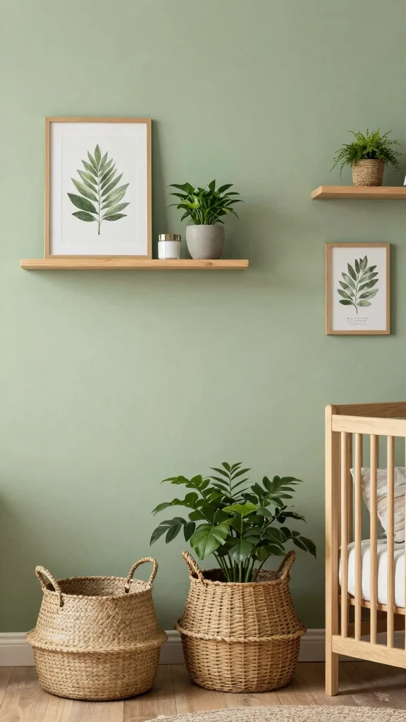 A small indoor plant can bring life to the corner, provided it’s safe for children. Accessories like woven baskets or rattan decor can add warmth and texture while maintaining a cohesive natural vibe.