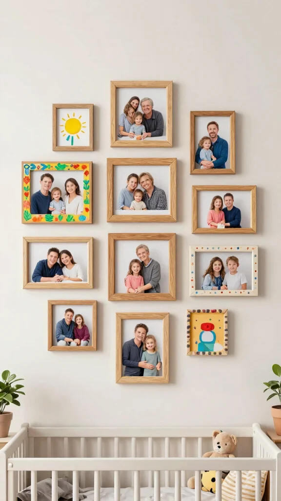 This gallery not only beautifies the nursery but also helps your child develop a sense of identity through shared family stories.