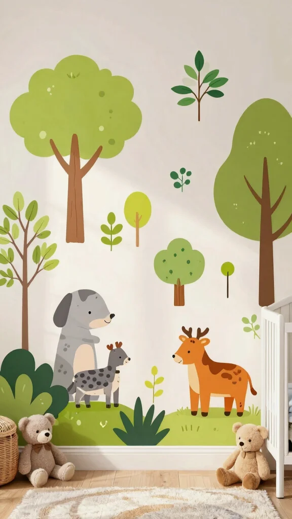 Enhance the botanical theme by incorporating real plants in decorative pots, bringing life and freshness into the nursery. This combination of art and greenery creates a nurturing environment that promotes emotional well-being.