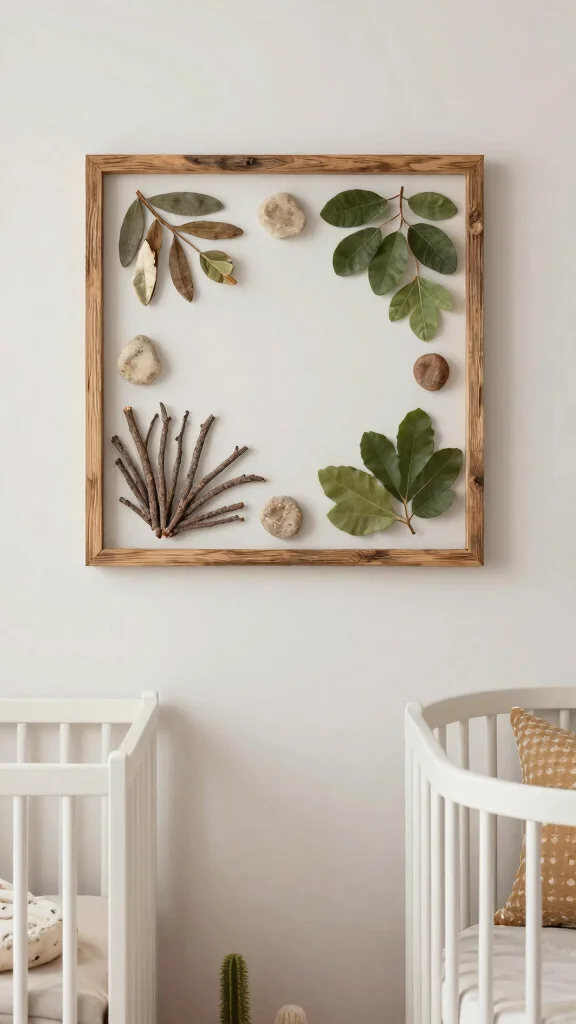 Frame these artworks in eco-friendly frames to enhance the rustic charm and elevate the personal touch. This creative process not only beautifies the nursery but also instills an appreciation for nature’s resources in your child.
