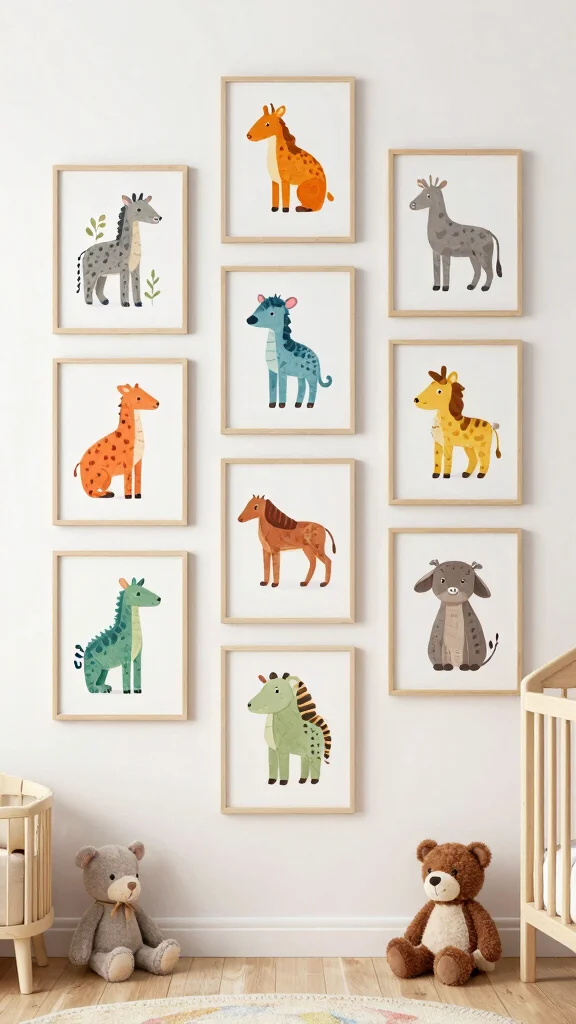 Animal themes bring a joyful and playful vibe to your nursery, enhancing your gallery wall with delightful imagery. Choose art that features your child’s favorite animals or explore a variety of species to introduce an educational component. Utilizing eco-friendly materials for prints not only beautifies the space but also fosters curiosity about wildlife.