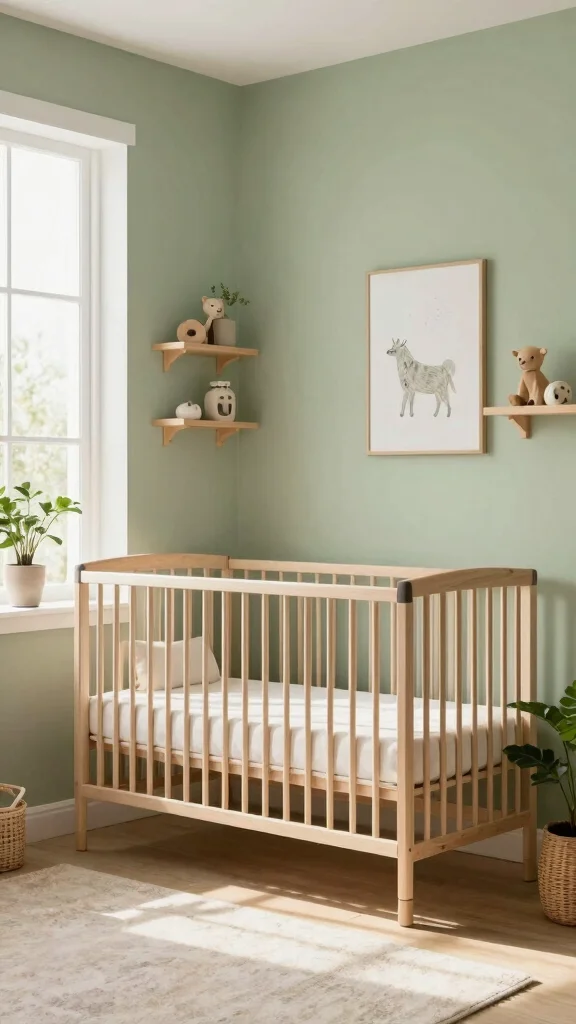 Soft sage green is a beautiful choice for a nursery, evoking a serene connection to nature. Its gentle hue brings a calming effect, perfect for creating a restful environment for your little one. When paired with natural wood accents, this palette creates a refreshing and timeless aesthetic. You can easily incorporate playful touches through animal prints or botanical-themed decor for added whimsy.