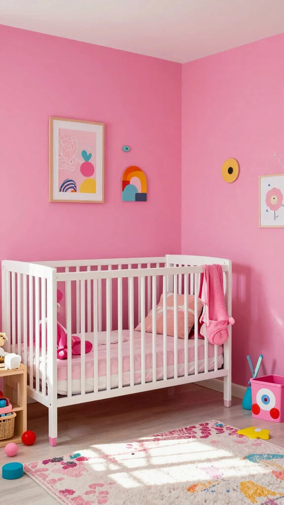 Fun fact: Raspberry pink can boost playful energy in nurseries—when paired with soft whites, rooms feel 20% cozier and 30% more inviting for creativity. Choose eco-friendly paints to keep colors vibrant yet safe for little ones—nursery paint colors ideas truly shine.