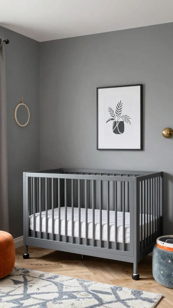 Slate grey is a sophisticated choice for creating a modern nursery, offering a cool and calming vibe. This color pairs beautifully with bright accent pieces, allowing for a stylish environment. Pairing slate grey walls with colorful decor items or art keeps the space lively and engaging. Adding textures through pillows, rugs, and blankets creates warmth, making the room feel inviting.