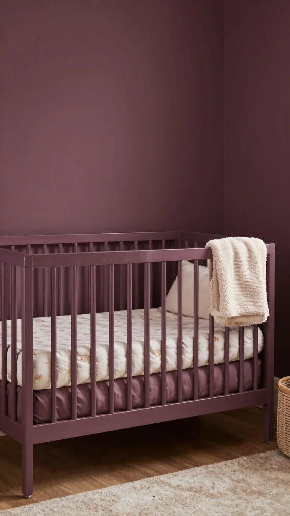 Muted plum is a rich, deep color that adds a sense of coziness to a nursery. This unique hue creates a nurturing environment, encouraging a sense of security for your little one. Pairing muted plum with soft beige or creams achieves a balanced, comforting look. Adding plush textiles and warm decor elements enhances the cozy atmosphere of the room beautifully.
