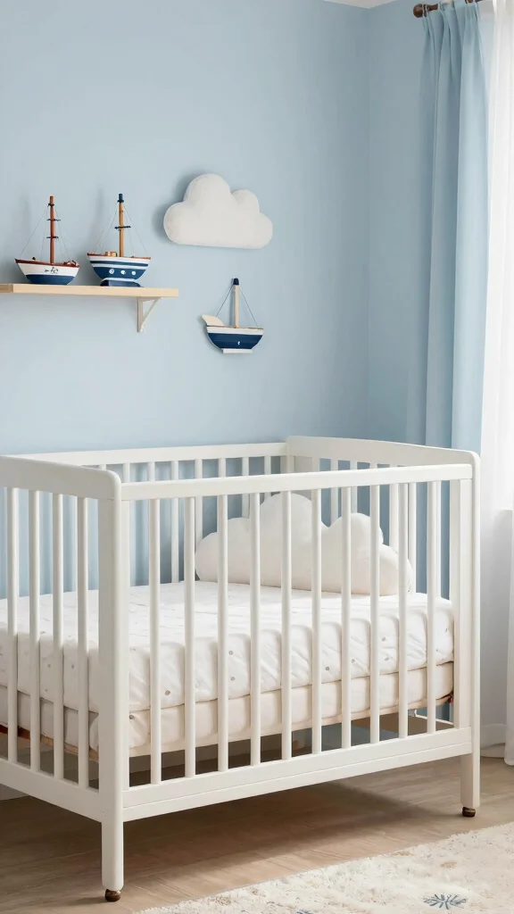 Soft blue is a classic choice for nurseries, evoking a sense of tranquility and peace. This gentle hue creates a calming atmosphere, perfect for your baby’s room. Pairing soft blue with creamy whites or light browns adds warmth, making the space feel inviting. Incorporating nautical-themed decor or playful clouds and stars can enhance the soothing vibe beautifully.