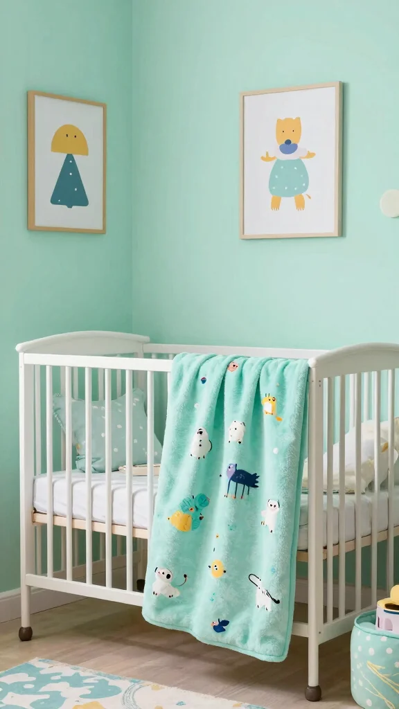 Mint green is a refreshing color that brings vitality and a sense of rejuvenation to any nursery. This lively hue evokes feelings of cheerfulness and energy, making it an ideal choice for an active little one. Pair mint green with soft yellows or light greys for a balanced, inviting look. Adding mint-themed decor, such as patterned blankets or polka dot wall art, can enhance the cheerful atmosphere.