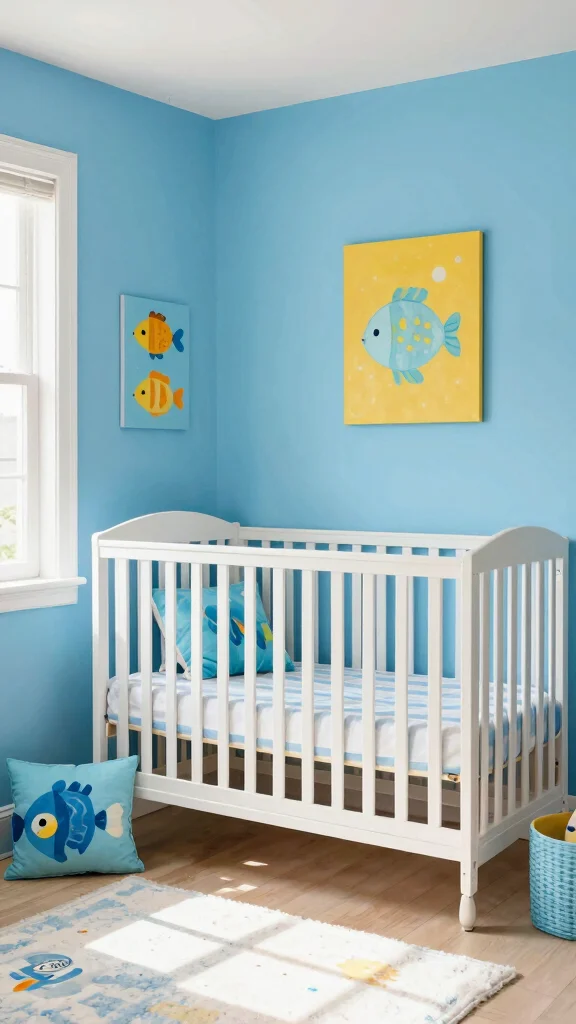 For implementation, consider eco-friendly paints to maintain a healthy environment for your little one. Mixing in different shades of blue and complementary colors can add depth and interest to the design, creating a layered look.