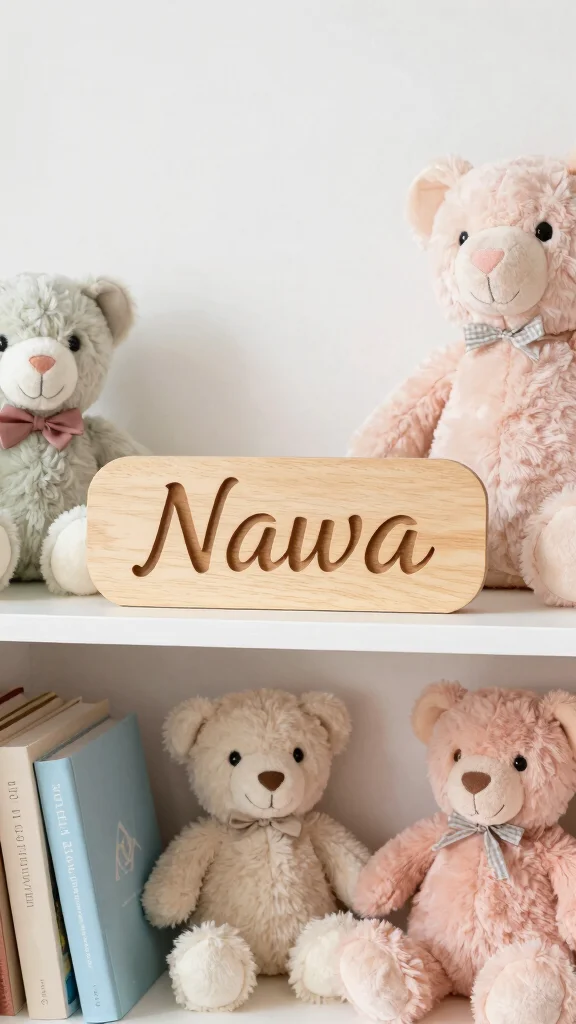 Integrating personalized name signs into your nursery decor adds a unique, meaningful touch. Select signs made from wood or fabric that can be prominently placed on shelves, giving the nursery a customized feel and reinforcing your child’s identity.