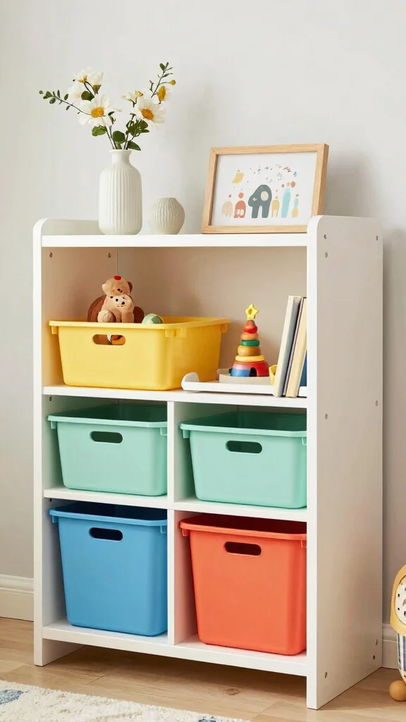 This approach showcases that organization can be both functional and fun, making your nursery a joyful space for your child.