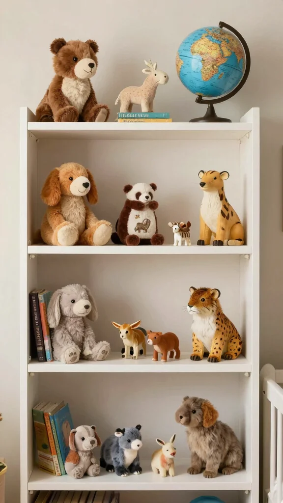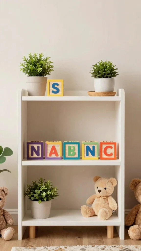 For an eye-catching arrangement, vary the heights of different items to create visual interest. This method teaches your child about organization while also being decorative. Don’t hesitate to rotate themes as your child grows, keeping the nursery feeling fresh and exciting.
