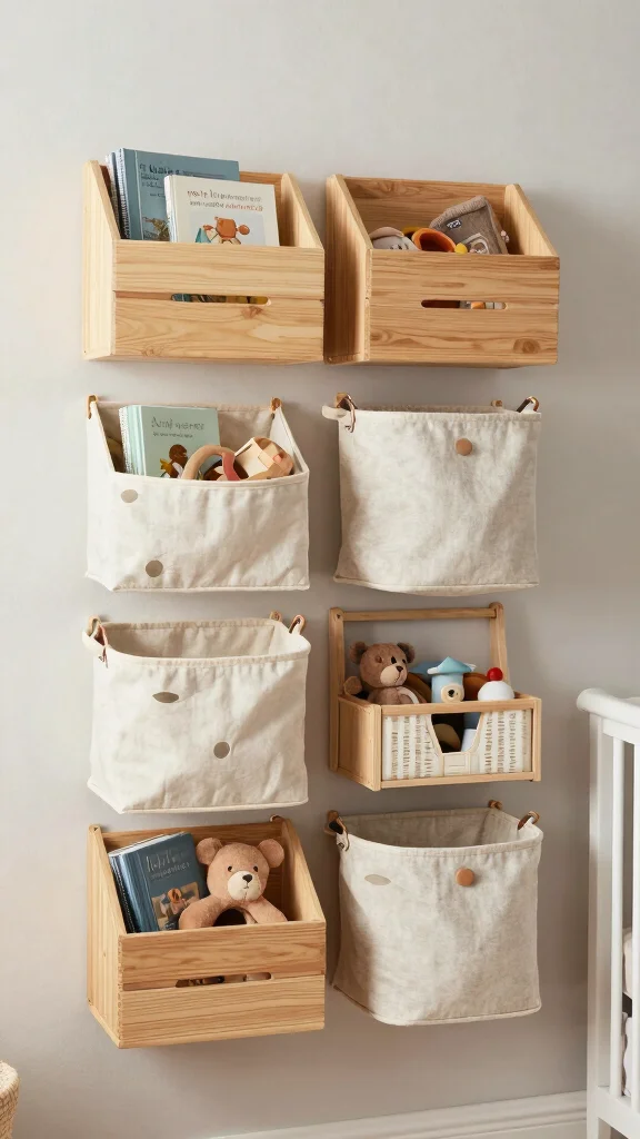Wall-mounted organizers are a fantastic way to save space while introducing an artistic flair to your nursery. These organizers can range from mesh baskets to wooden caddies, designed to hold everything from books to toys. Selecting organizers that align with your nursery’s aesthetic adds functionality without compromising style.