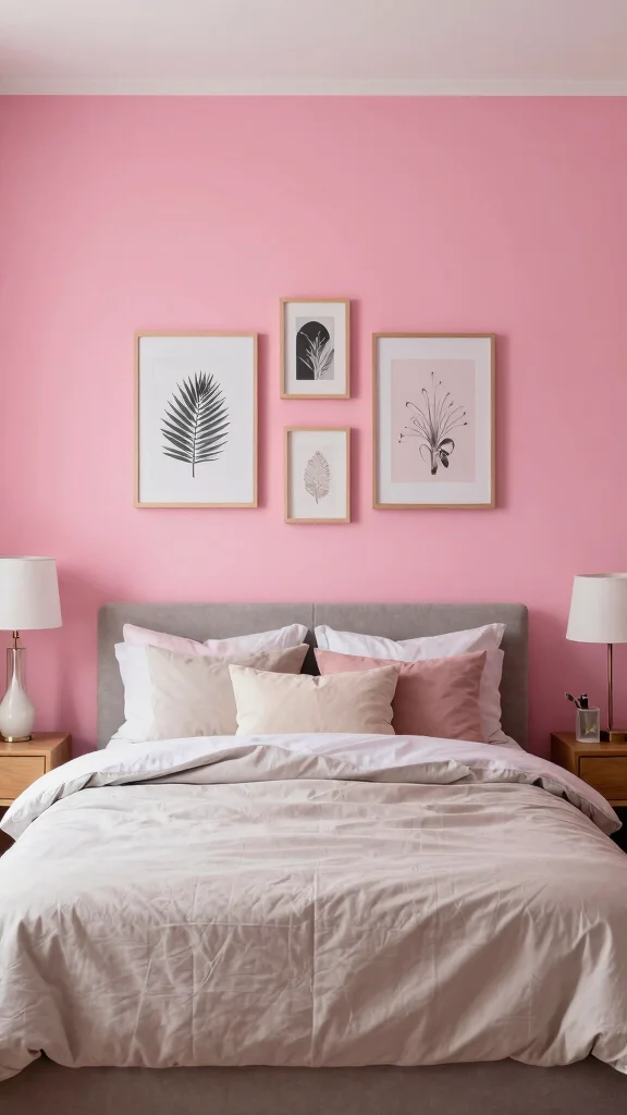 A bold pink accent wall can transform your guest bedroom, serving as a stunning focal point. Pairing it with softer hues and decor creates a balanced and inviting look. Imagine a deep pink wall highlighting artwork or decorative pieces that echo the same shades.