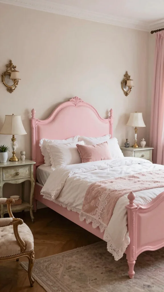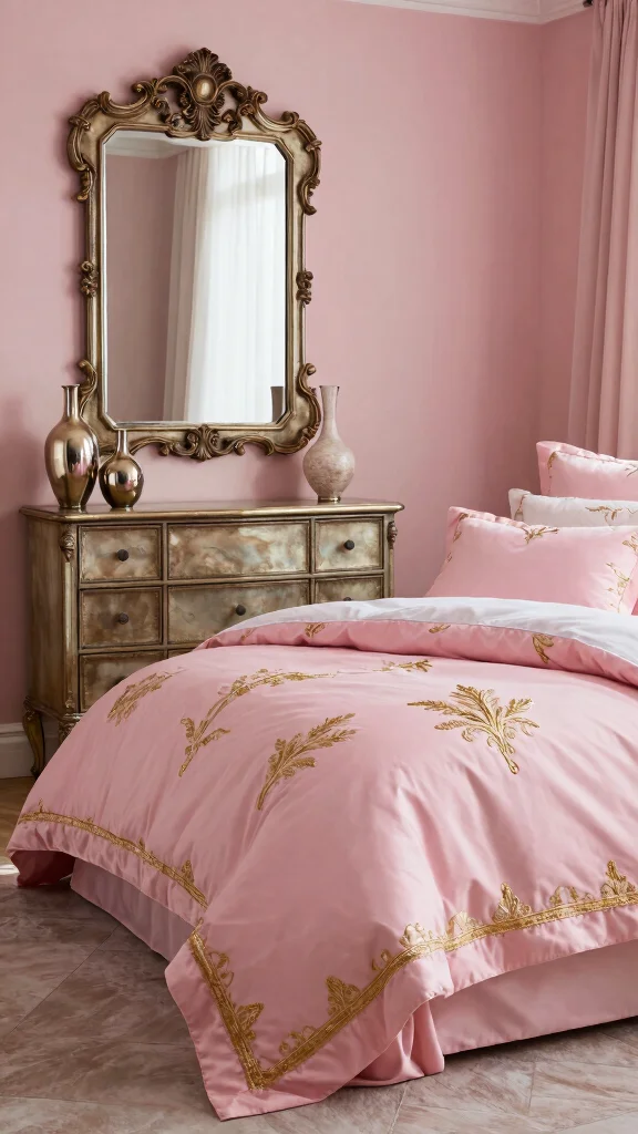 Incorporating metallic accents alongside pink decor can elevate the romantic feel of your guest room. Gold or silver touches add sophistication and a playful sparkle, creating a luxurious atmosphere. Imagine metallic light fixtures or mirrors reflecting light beautifully against soft pink walls.
