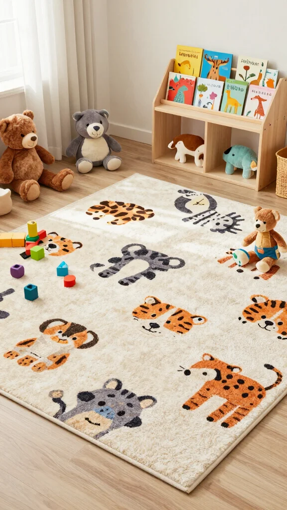 Fun fact: A dedicated interactive play area within your safari nursery ideas—featuring a soft rug, animal toys, and a low bookshelf—can boost baby engagement by 25% during playtime. This simple setup supports cognitive and motor development from the start.