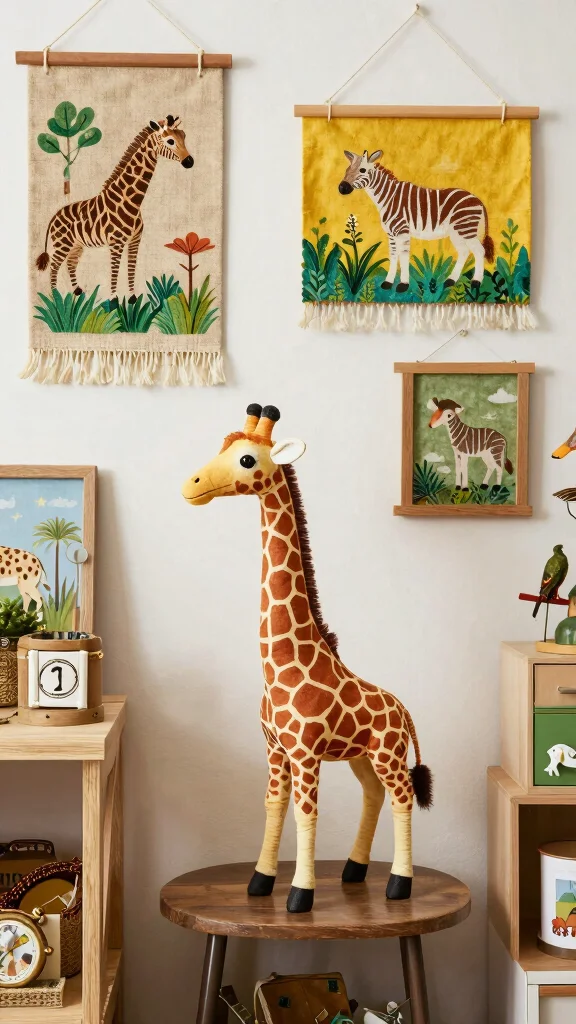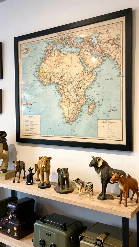 Frame a vintage map of Africa or find classic storybooks featuring wild animals to spark imagination. Displaying these treasures creates a rich narrative as your child grows.