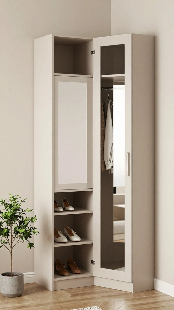 To make the most of this approach, consider selecting a wardrobe with a mirrored finish to reflect light and create an illusion of depth. You can also scout for budget-friendly options at thrift stores or online marketplaces. This trend not only maximizes space but also enhances the overall aesthetic of your room, providing a seamless blend of functionality and style.