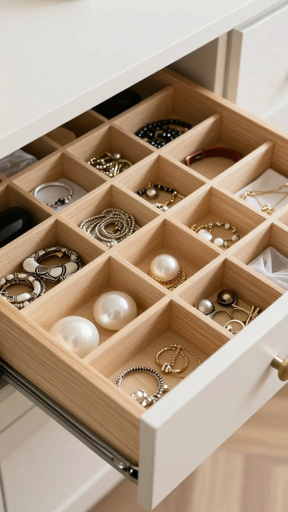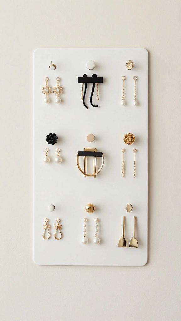 Install a magnetic strip on the side of your dresser or inside a cabinet door for easy access. Use decorative magnets to enhance the aesthetic while maintaining organization. This strip can also serve as wall decor, blending functionality with style in your dressing area.