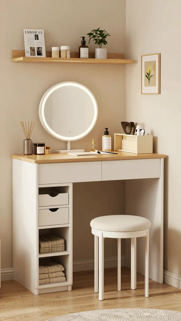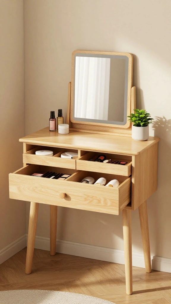 Compact vanity tables are ideal for small dressing areas, blending function and style effortlessly. These tables often come with built-in storage, making them perfect for cosmetics and other essentials. Imagine a charming vanity that allows you to prepare for your day in a cozy and inviting environment.