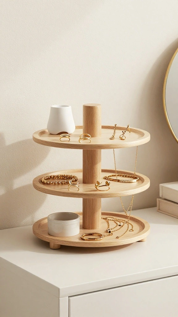 Rotating jewelry organizers offer a stylish way to store and display your jewelry collection compactly. These organizers can save space on your vanity while keeping your favorite pieces easily accessible. Picture a chic organizer that turns, allowing you to browse your jewelry effortlessly.