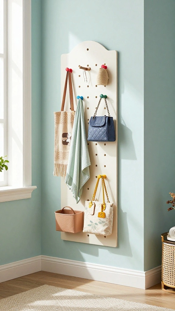 For added flair, consider decorative hooks that can hold scarves or bags while serving as a design element. Pegboards can be customized with baskets and hooks for a unique touch. This creative approach not only helps with organization but also showcases your personal style.