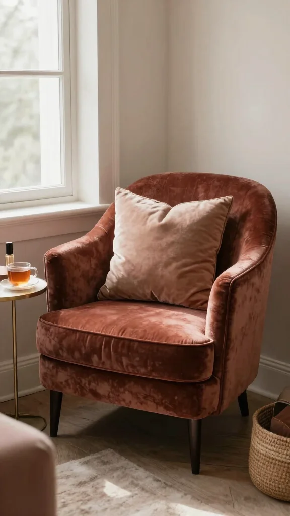 Combining velvet with metallic accents, such as gold or brass, further amplifies the luxurious vibe. In smaller spaces, focus on accent pieces rather than larger items to prevent the area from feeling overwhelmed.