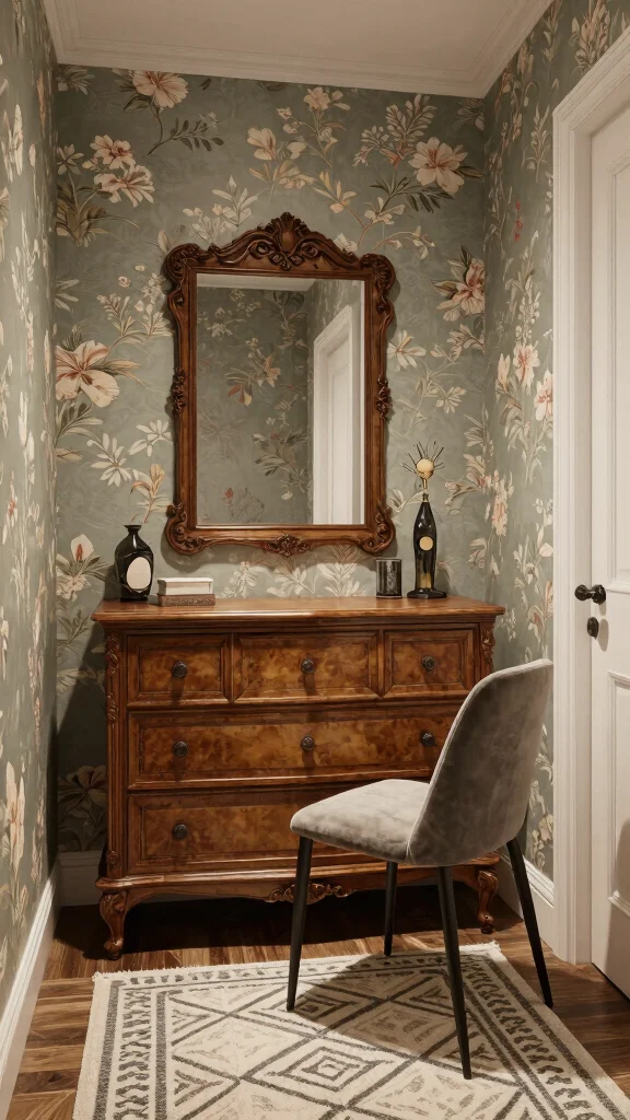 Introduce classic patterns in contemporary colors, such as floral wallpaper in muted shades or a traditional rug with a modern design. This dynamic mixture keeps the decor fresh and engaging.