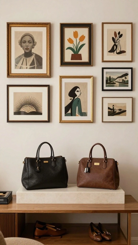 Art can elevate any space, and your dressing room is no exception. Incorporating displays of art or interesting decor pieces that resonate with you can make the room feel more personal and luxurious. Consider creating a small gallery wall showcasing framed artwork or unique items, such as sculptures or designer handbags on display.