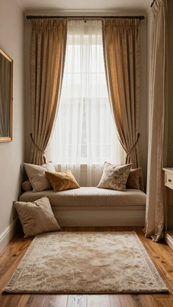 This layering not only enhances comfort but also adds visual interest, making your dressing room feel inviting and luxurious.