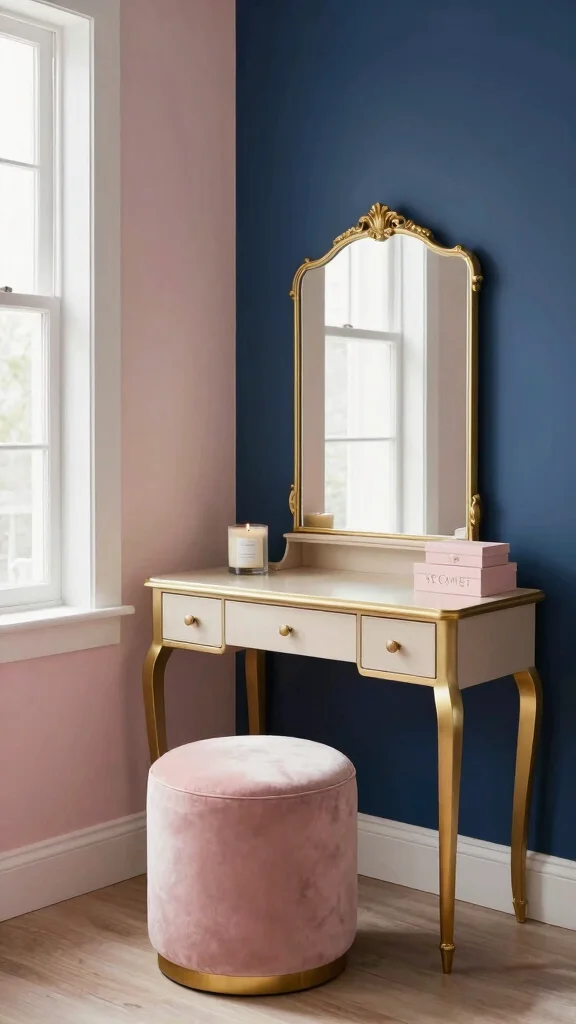 Add mirrored surfaces to reflect light and create the illusion of a larger, more spacious dressing area.