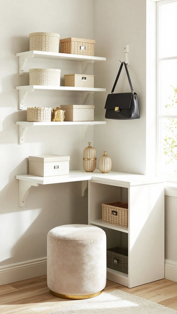 Select chic storage options to keep your items organized while complementing the overall decor.