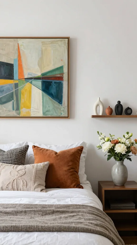 – Opt for wall art that enhances your color palette.