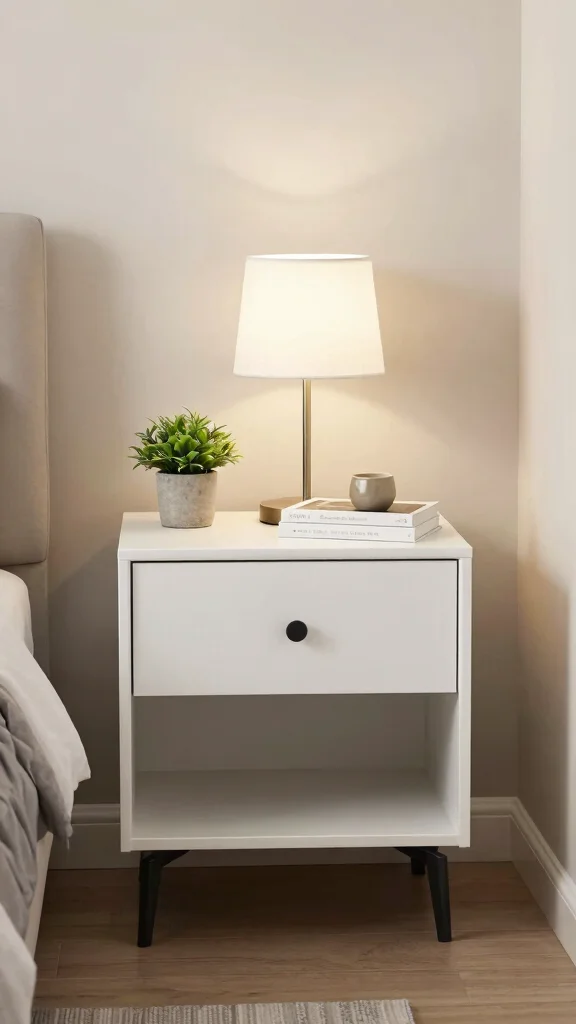 – Opt for nightstands with storage for organization.