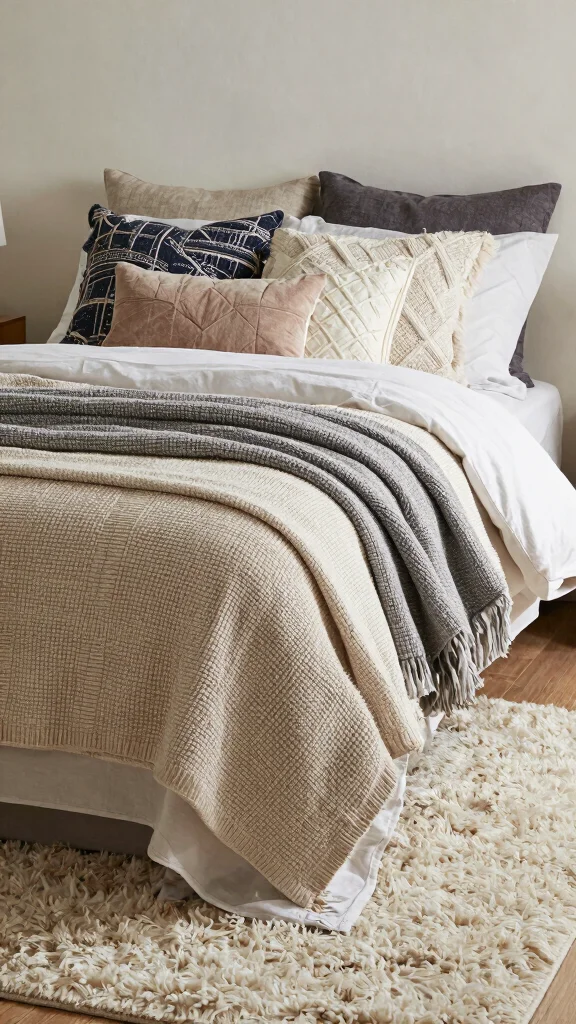 – Use textured throw pillows for comfort and style.