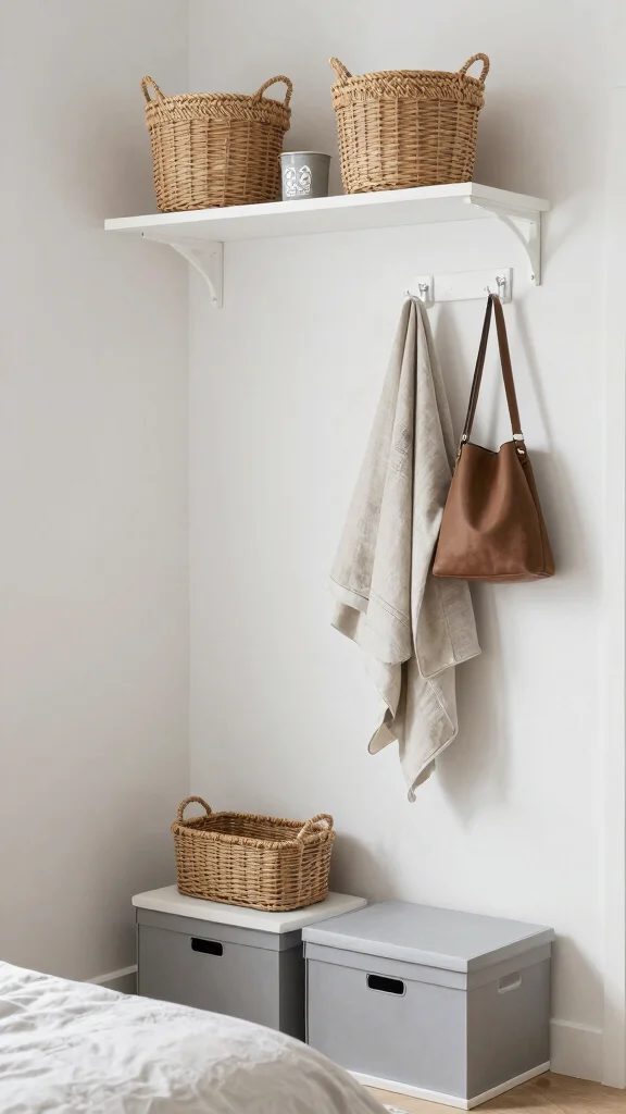 – Utilize vertical space with wall-mounted hooks for coats or bags.