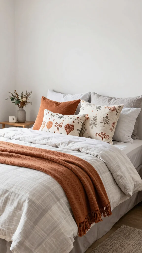 – Rotate throw pillows and blankets based on the season.