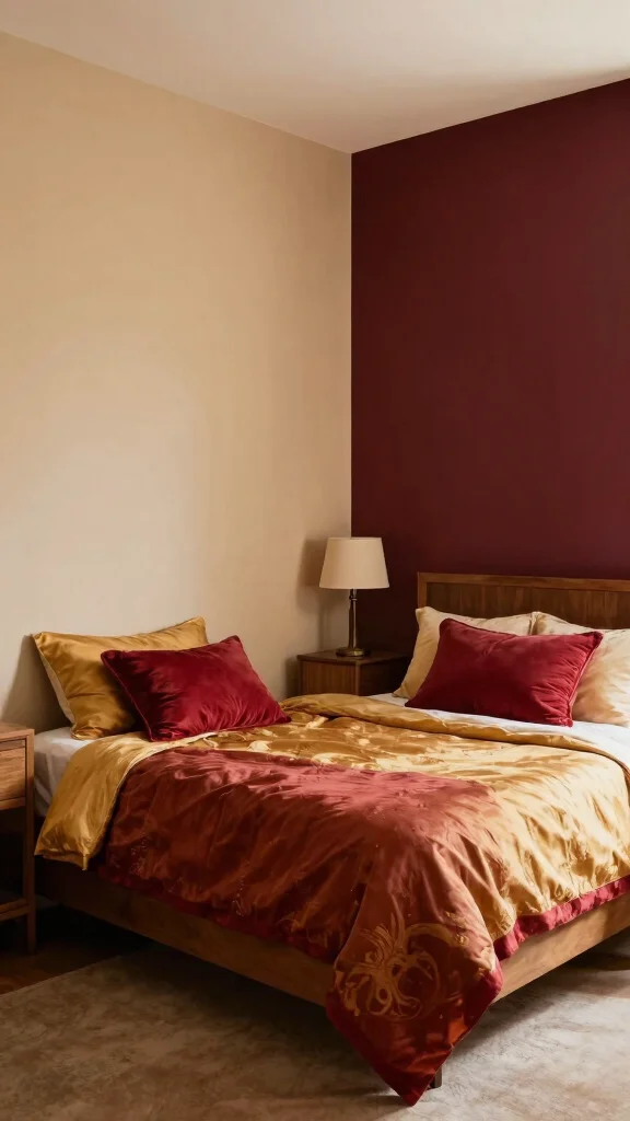 – Use deep burgundy bedding with cream-colored walls to create a luxurious feel.