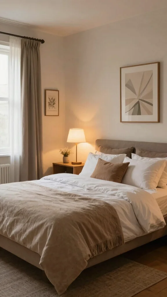 Colors play a crucial role in the overall vibe of a room. For a cozy feel, opt for warm color palettes like soft creams, muted greens, or gentle blues. These shades can make the space feel more intimate and inviting. You can incorporate these colors through bedding, curtains, and wall paint. Consider testing samples on the wall to see how they look in different lighting throughout the day.