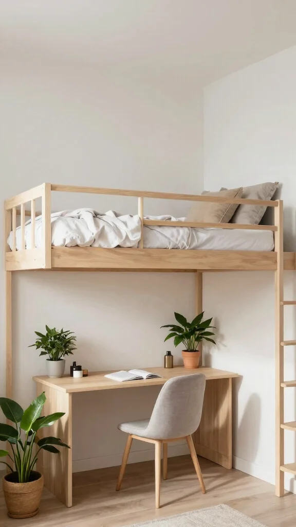 A loft bed setup not only saves space but also adds a playful touch, making your guest bedroom stand out.