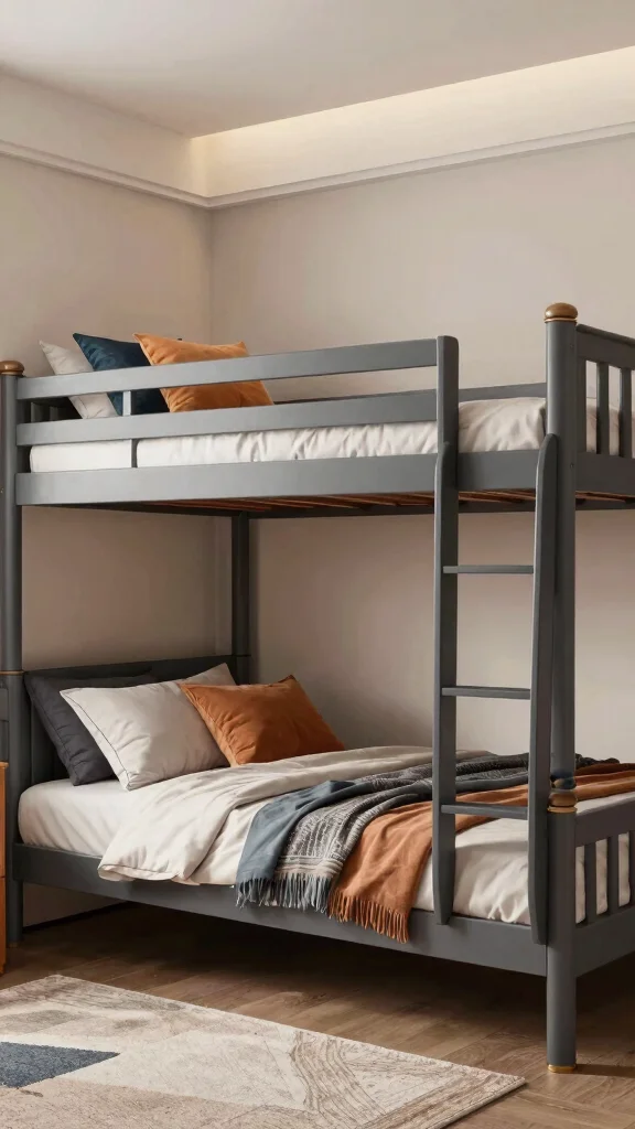 To enhance functionality, consider adding integrated storage solutions beneath the lower bed or stairs. Stylish linens can elevate the design, creating a welcoming atmosphere for your guests.