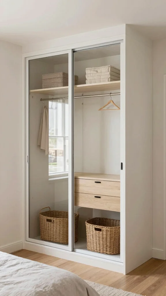 Consider using mirrored doors to reflect light and create an illusion of a larger area. Organizing the interior with baskets or bins can enhance accessibility, ensuring a pleasant stay.