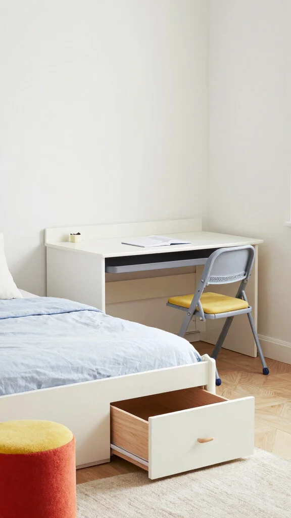 This thoughtful approach not only optimizes limited space but also keeps the room clutter-free and functional.