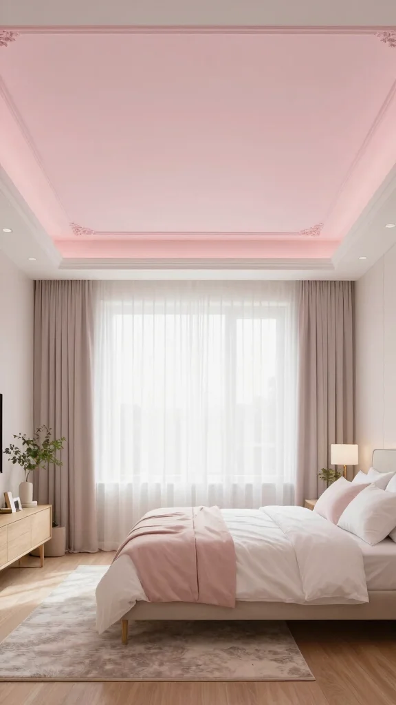 Soft pastel colors can transform your tray ceiling into a serene haven in your master suite. Shades like pale pink, soft lavender, and mint green evoke tranquility, creating a peaceful atmosphere that encourages relaxation and comfort. Pairing these gentle hues with white or light wood furniture enhances the airy feel, while well-placed lighting fixtures can add warmth and glow, beautifully reflecting the pastel tones throughout the space.