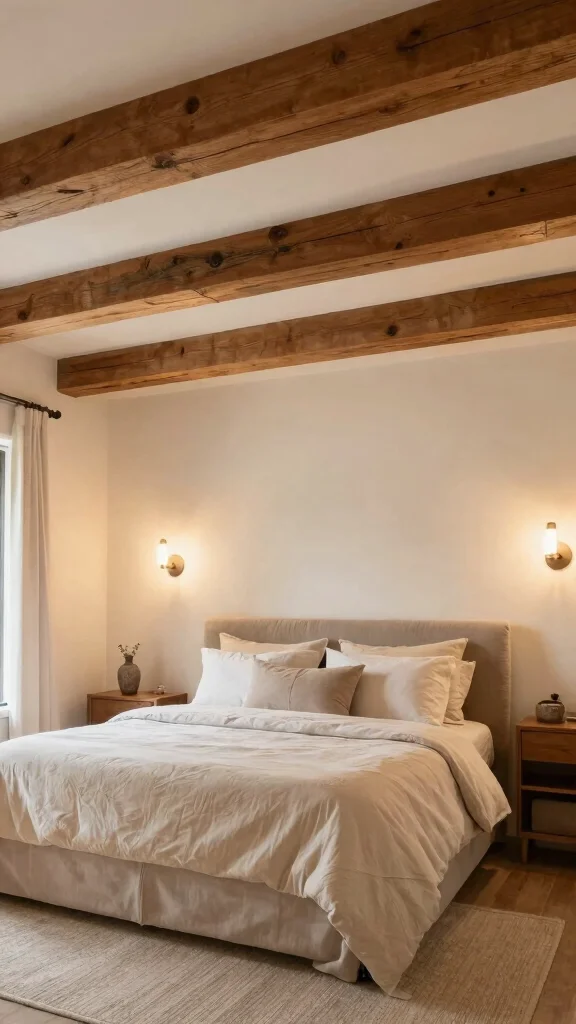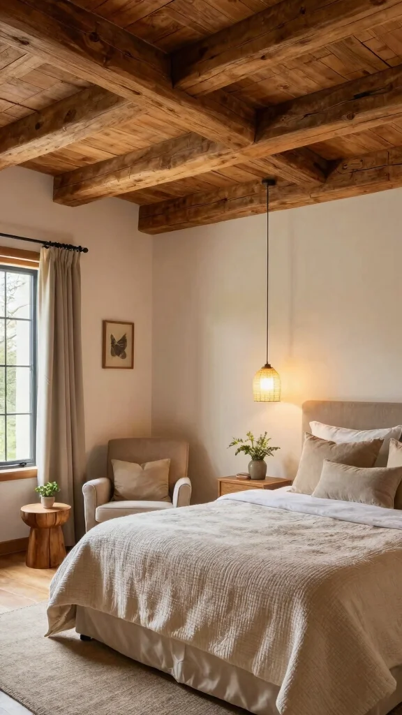 Choose untreated wood or light-stained options to keep the area feeling open and airy. This design is particularly effective in larger master suites where the ceiling height can be appreciated, allowing the wood elements to stand out beautifully against earthy decor tones.