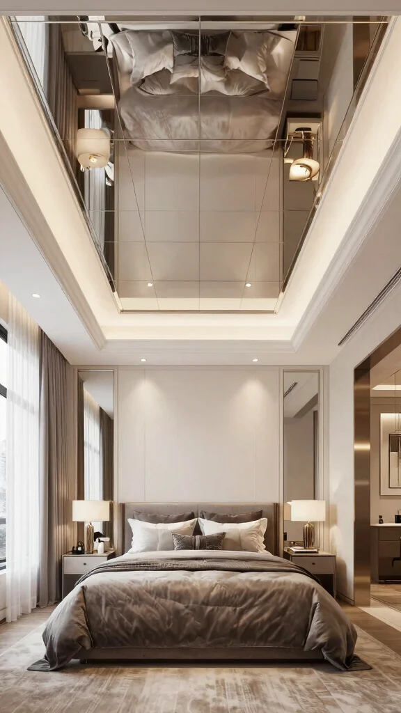 Incorporating mirrors into your tray ceiling design can create a stunning visual effect, amplifying light and space in your master suite. Strategically placed mirrored panels enhance the feeling of openness and luxury, making the room feel larger and more inviting.