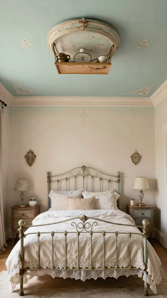 Pair the ceiling design with vintage furnishings, such as wrought iron beds or antique dressers, to create a harmonious look. Accents like lace curtains and vintage decor pieces can enhance the shabby chic atmosphere, creating a warm and inviting retreat. Use soft lighting to maintain warmth and coziness throughout the space.