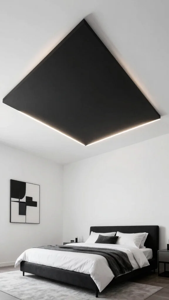 For a contemporary vibe, geometric tray ceilings can bring a stylish edge to your master bedroom. The use of sharp angles and defined shapes can introduce a modern art element, making the ceiling feel like a piece of sculpture that enhances the room’s overall aesthetic.