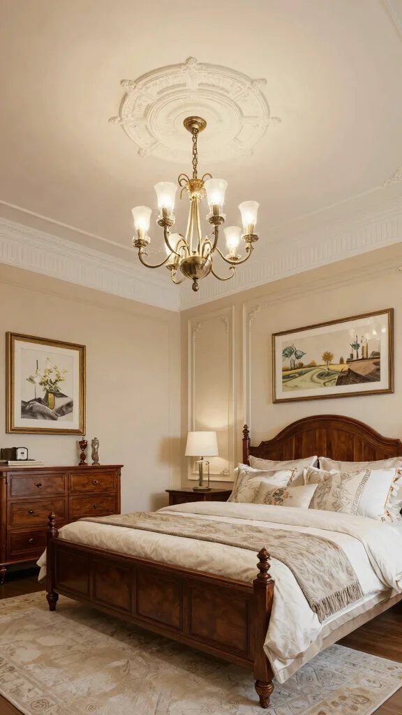 Opt for white or cream-colored molding that contrasts gently with pastel or deep wall colors. Adding a chandelier or an ornate light fixture can amplify the elegance, creating a luxurious atmosphere in your room.