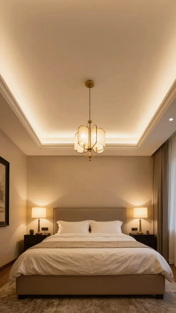 Layered lighting is key. Use recessed LEDs around the inner lip for ambient glow, add wall sconces or reading lights for tasks, and consider a pendant or chandelier placed outside the tray to maintain clean sightlines. Dim or smart-control the lights to shift from intimate to bright for different activities. For tray ceiling designs and modern tray ceilings, color temperature around 2700K–3000K gives a cozy master bedroom decor vibe. Ensure lighting is integrated into the ceiling design to avoid glare and to highlight the ceiling architecture.